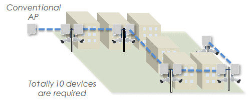 -기존 일반적인 PtoP 무선 브리지 방식은 각 지점마다 2대의 장비를 설치 해야 함