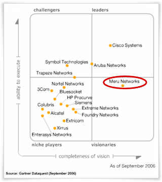 Meru의 집중된 Voice,data,video 무선랜 플랫폼은 Gartner 에서는 기술력범위에 있어서 최고의 성능이라고 평하고 있습니다.