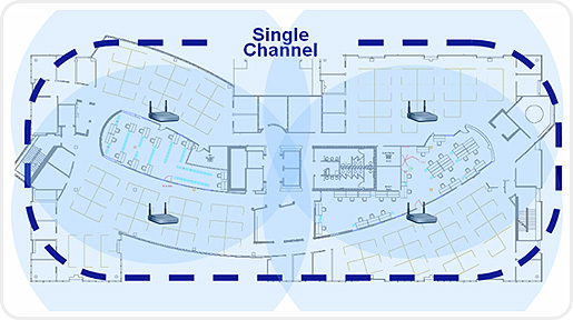 Virtual Cell을 구현하려면 모든 AP가 같은 Channel을 할당하여 One-Channel Architecure로 구성하며 이것은 사이트서베이(Site Survey)의 단순화 하여 비용을 절감하고 쉬운관리를 지원한다.